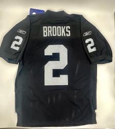This is the Authentic Aaron Brooks Black Raiders Jersey. The jersey size is 48 and his number is #2. This authentic jersey has all sewn on material for the name and the numbers. A great looking jersey at a great price!