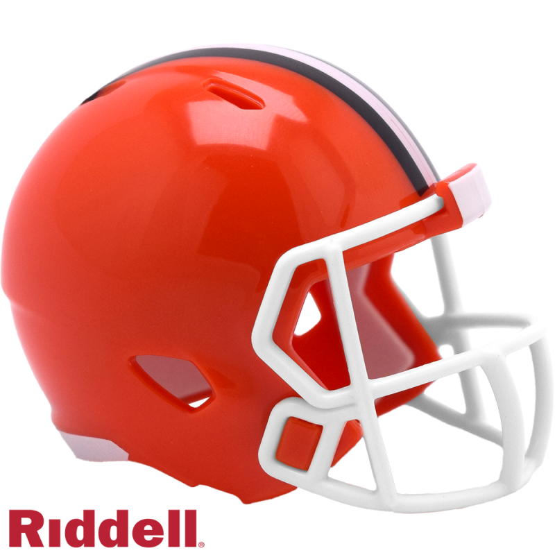 Cleveland Browns Pocket Pro Helmet by Riddell. These are individual mini helmets approximately 2" x 2 1/2" in a clam sheel display. New logo as of 2024.
