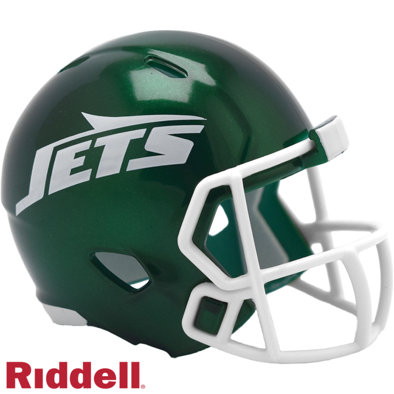 New York Jets Speed Pocket Pro Helmet by Riddell. These are individual mini helmets approximately 2" x 2 1/2" in a clam shell display. New logo for 2024.