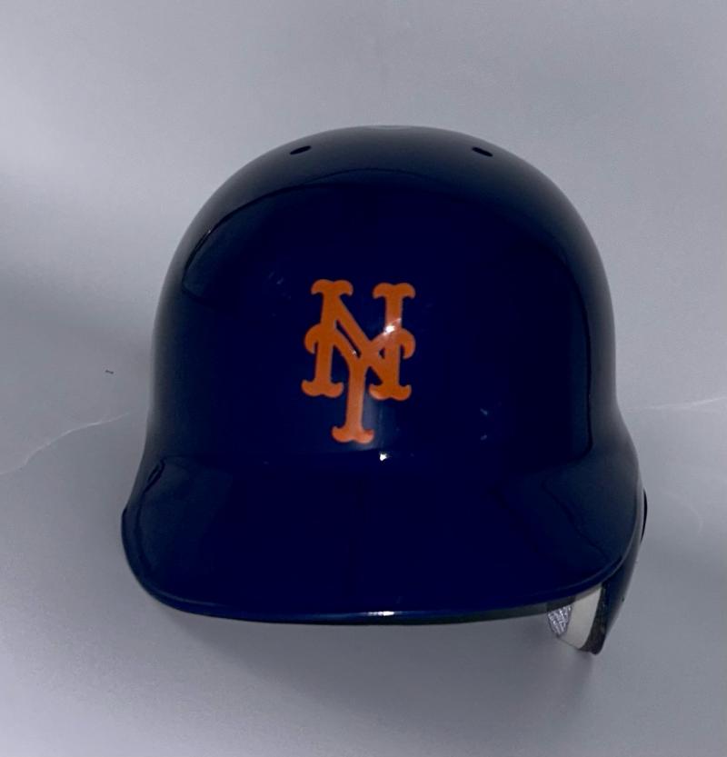 New York Mets Left Flap Standard MLB Batting Helmet by Rawlings. Left ear flap is worn by a right handed batter. These are the full size authentic standard batting helmets that are worn by many pros. The standard size is 7 3/8".